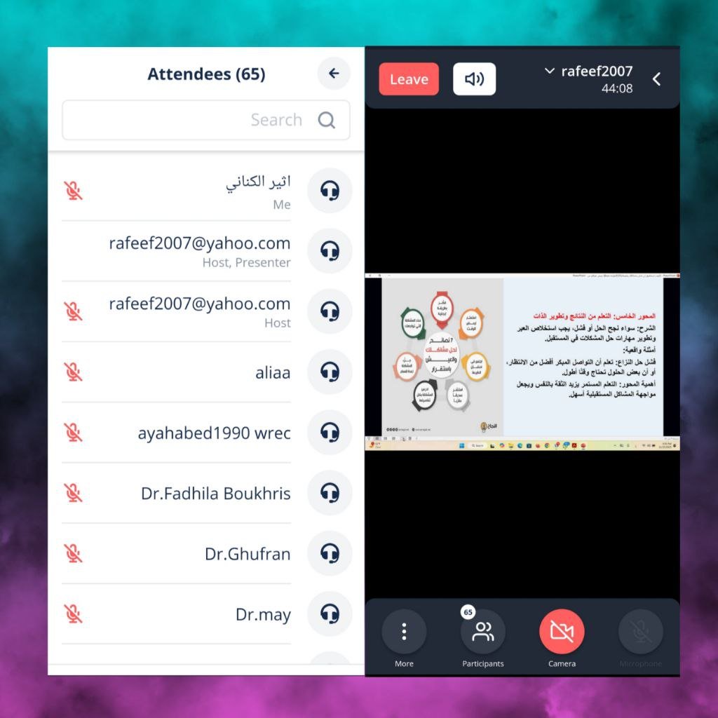 وتضمنت الندوة، التي قدمها كلٌّ من الدكتورة رفيف عبد الحافظ الرياحي والدكتورة ندى فاروق عبود من جامعة الكرخ للعلوم، والمدرس سيف جاسم محمد علي من تربية بغداد، محاور عدة شملت فهم المشكلة وتحديد أسبابها، التفكير في البدائل الممكنة، تقييم الحلول، اختيار الأنسب منها، ثم متابعة التطبيق والتعلم من النتائج ضمن منهجية تطوير ذاتي مستمرة.