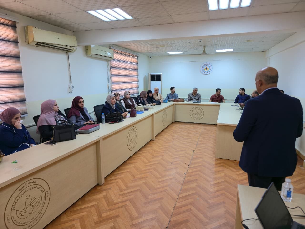 نظم مركز التطوير و التعليم المستمر في جامعة البصرة محاضرة علمية عن التعلم والتعليم ضمن الوحدة الأولى من دورة طرائق التدريس السابعة، المخصصة للتخصصين الزراعي والطب البيطري.