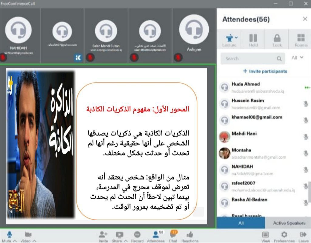 نظم مركز التعليم المستمر في جامعة البصرة وبالتعاون مع كلية التربية للبنات ندوة إلكترونية بعنوان "الذكريات الكاذبة والإرشاد النفسي: كيف نفهم ماضينا ونوجه حاضرنا".