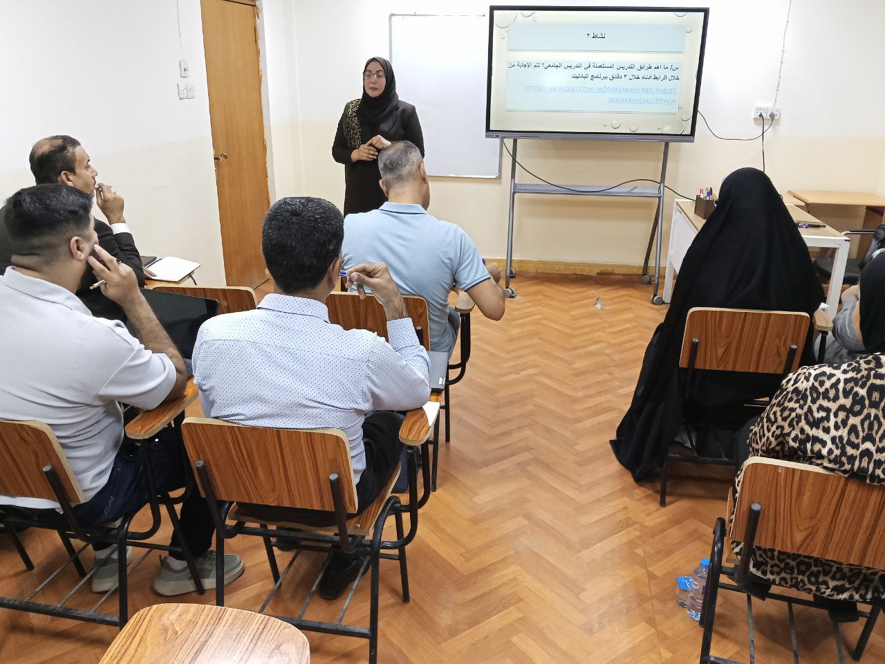 وتضمنت المحاضرة التي قدمتها التدريسية ثراء عبدالرسول حسن، محاور متعددة تضمنت الأهداف العامة والخاصة، وأنواع الاستراتيجيات التعليمية، واستراتيجية العصف الذهني.