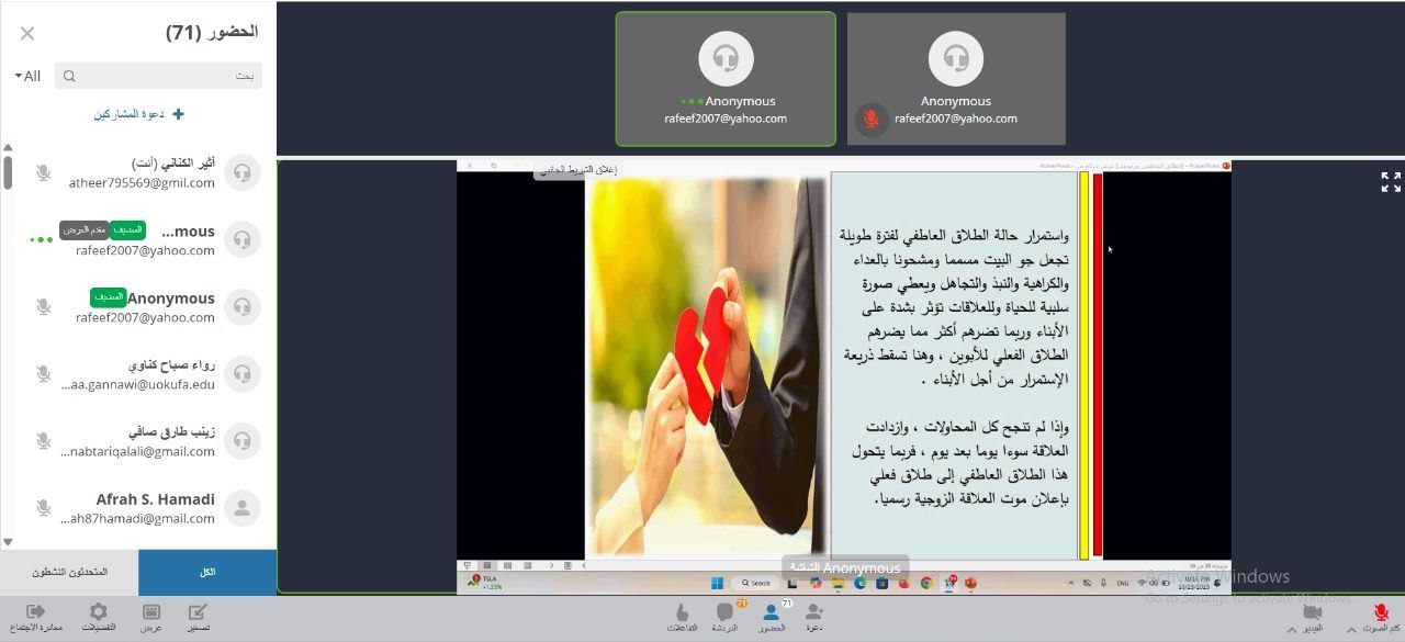 نظم مركز التعليم المستمر في جامعة البصرة بالتعاون مع كلية التمريض ندوة إلكترونية بعنوان "الطلاق الخطوة الأولى لهدم الأسرة".