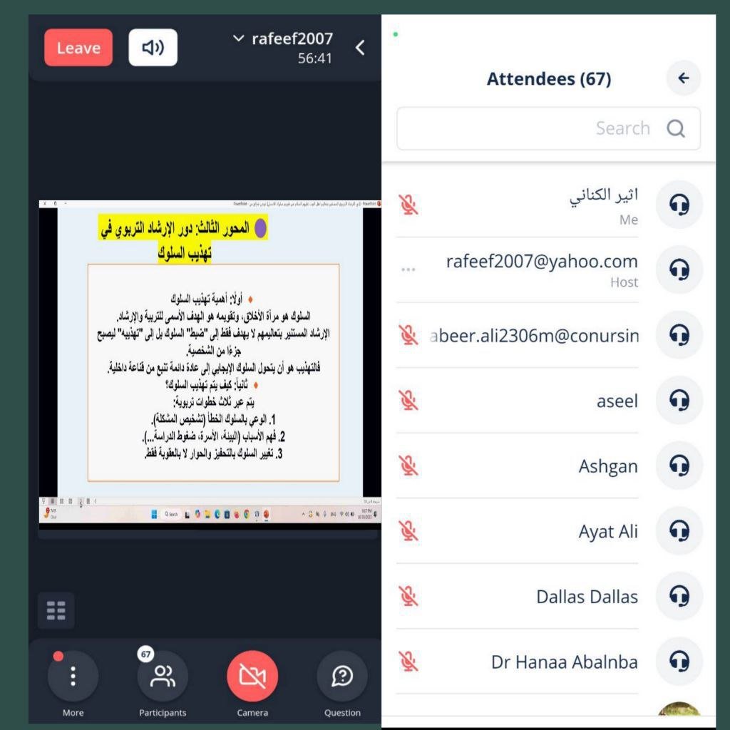 وتضمنت الورشة التي قدمتها الدكتورة رفيف عبد الحافظ الرياحي والتدريسية سرى منصور السبتي، مفهوم الإرشاد التربوي في ضوء الإسلام، والأسس القيمية في إرشاد أهل البيت (عليهم السلام)، ودور الإرشاد التربوي في تهذيب السلوك، والمنهج العملي في تقويم السلوك وفق نهج أهل البيت (عليهم السلام).