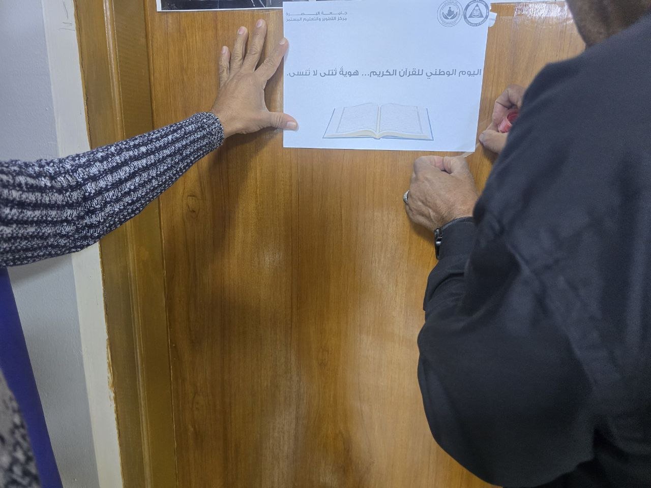 أجرى مركز التطوير والتعليم المستمر في جامعة البصرة حملة توعوية بمناسبة اليوم الوطني للقرآن الكريم، تمثلت بنشر بوسترات تعريفية خاصة بهذه المناسبة في أروقة الجامعة ومرافقها المختلفة.