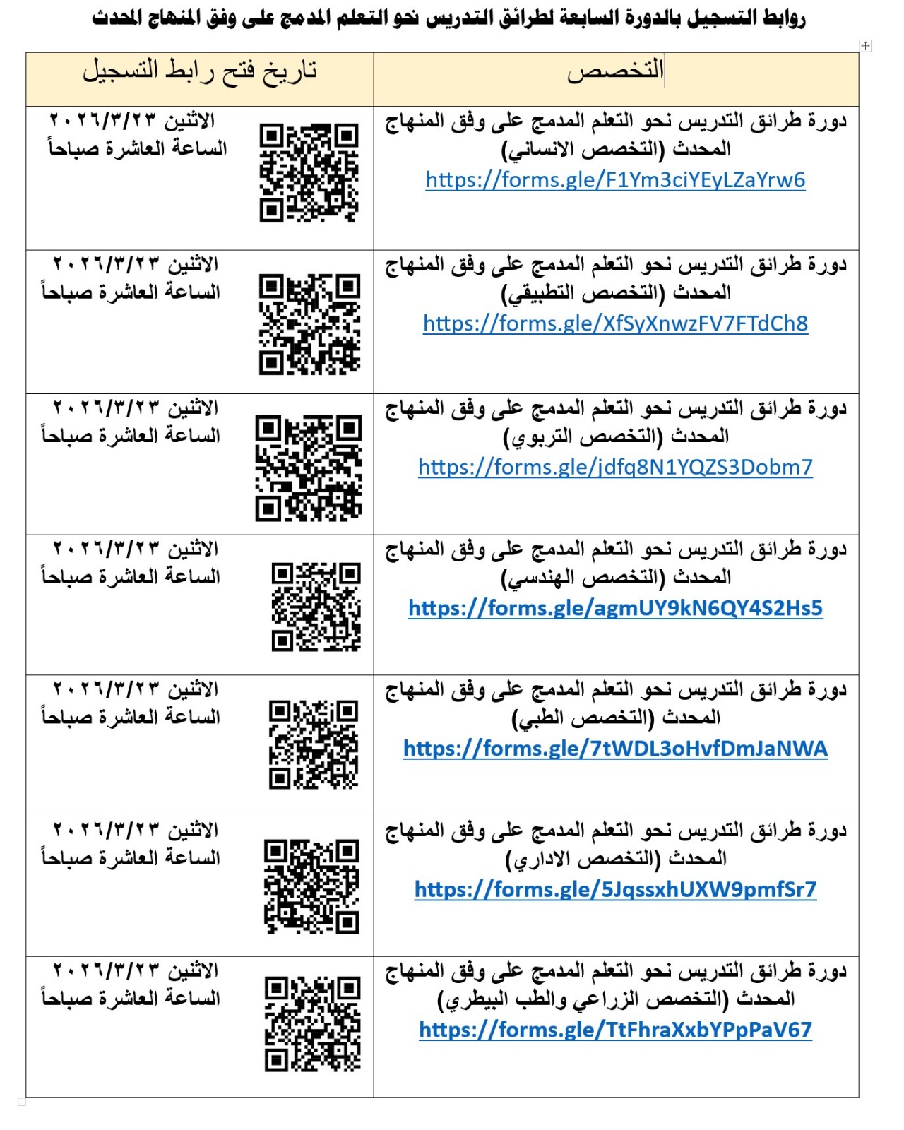 اعلان نشر روابط التسجيل الالكتروني لدورة طرائق التدريس السابعة لجميع التخصصات
